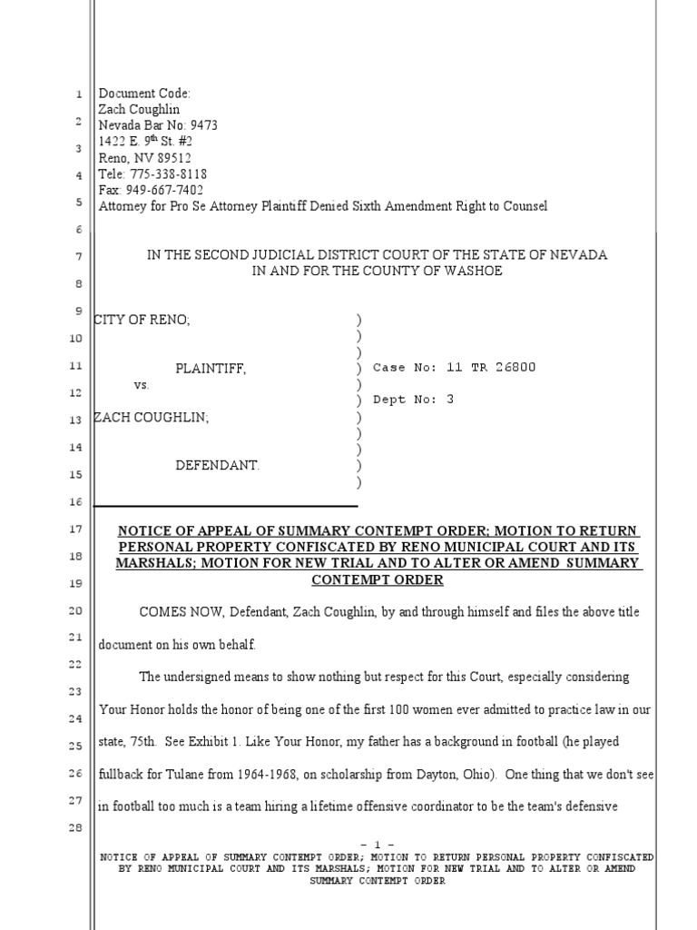 3 7 12 56 Page Motion Fax Totalling 224 Page Notice Of Appeal Mtn Return Confiscated Personal Property 11 Tr 26800 Pdf Contempt Of Court Constitutional Law